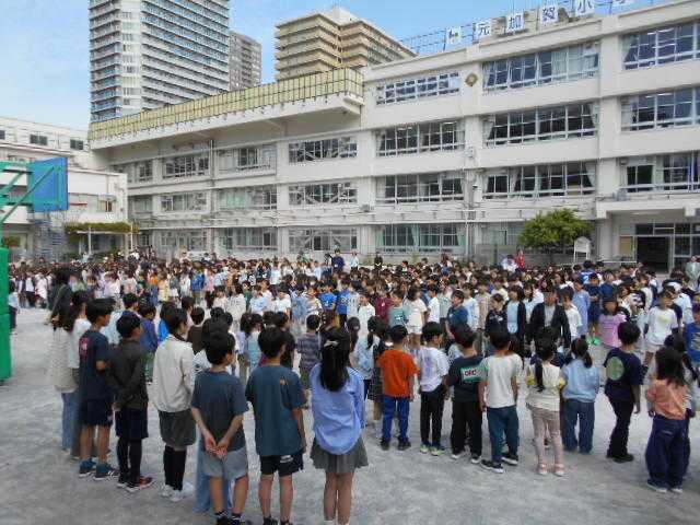 今日は、朝会の時間を使って「1年生を迎える会」を行いました。