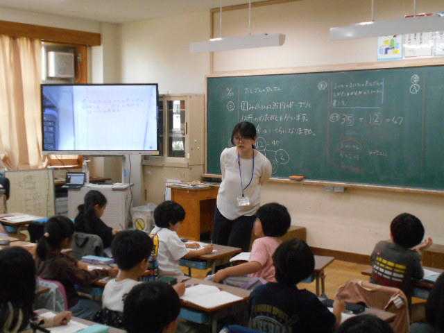 算数の様子です。たしざんの筆算について学習しています。