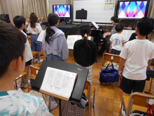 音楽の時間の様子です。様々な歌を元気に大きな声で歌っています。